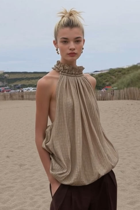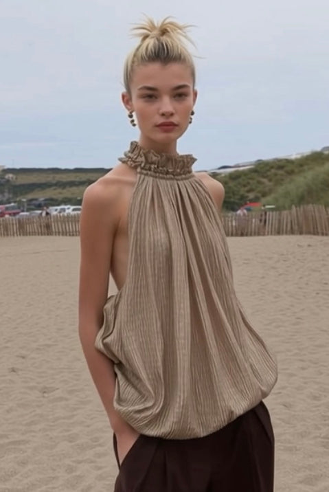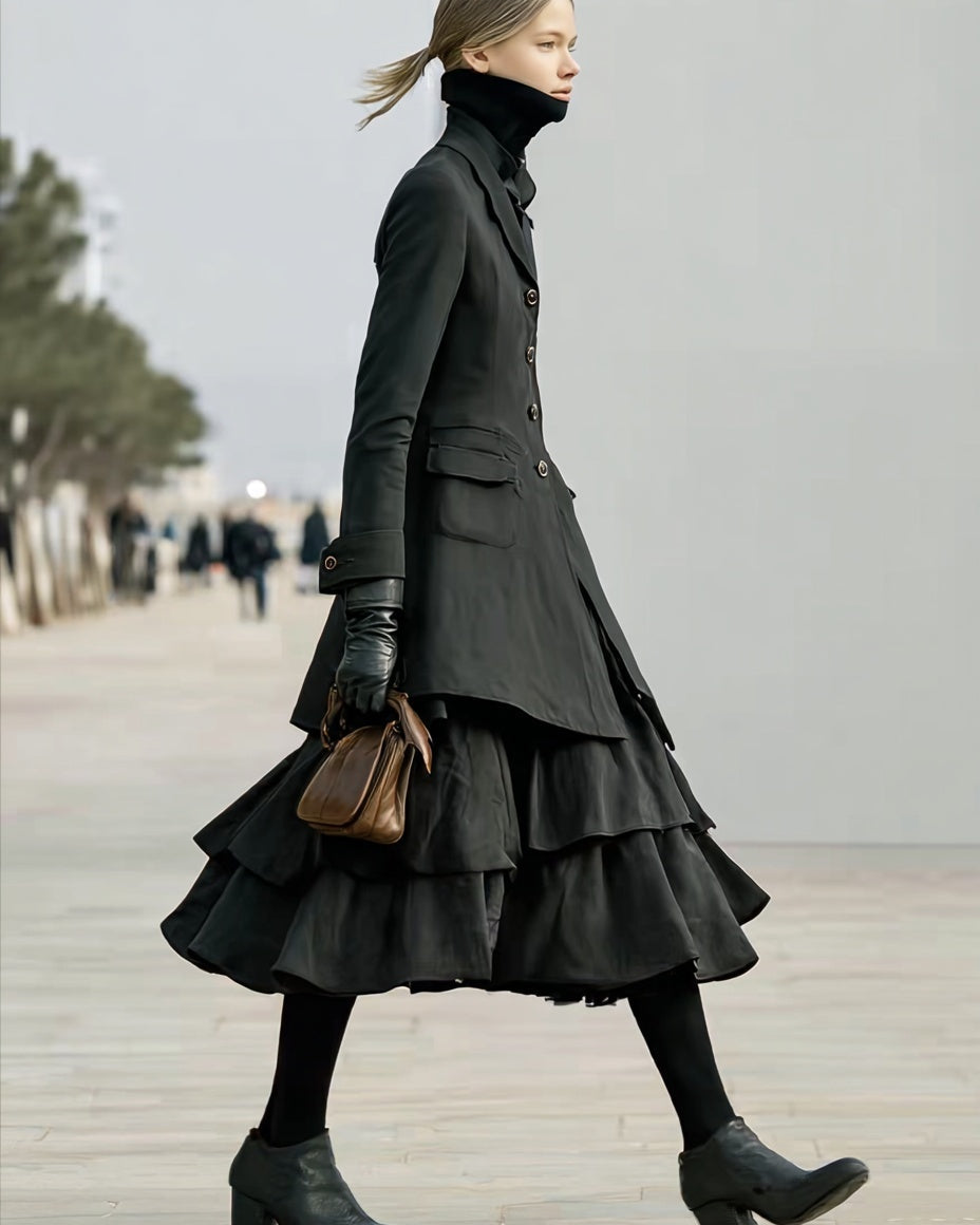 Women Modern Tailored Trench Coat and Short and ruffle shirts