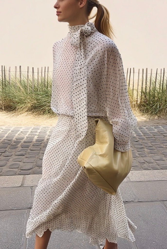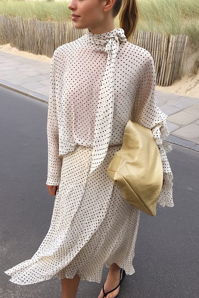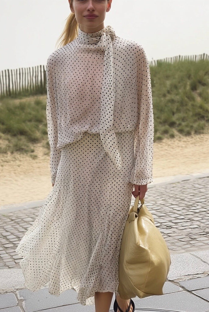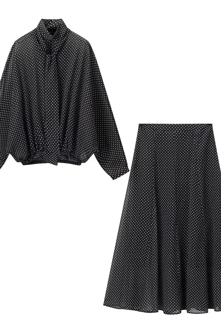 Vintage Polka Dot Blouse and Shirt Two Piece Matching Sets