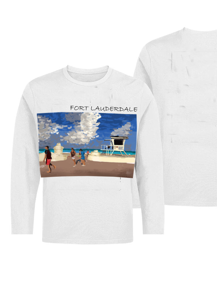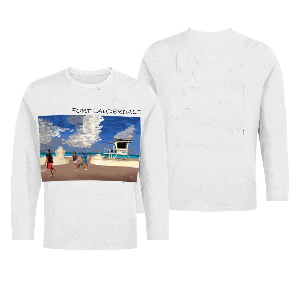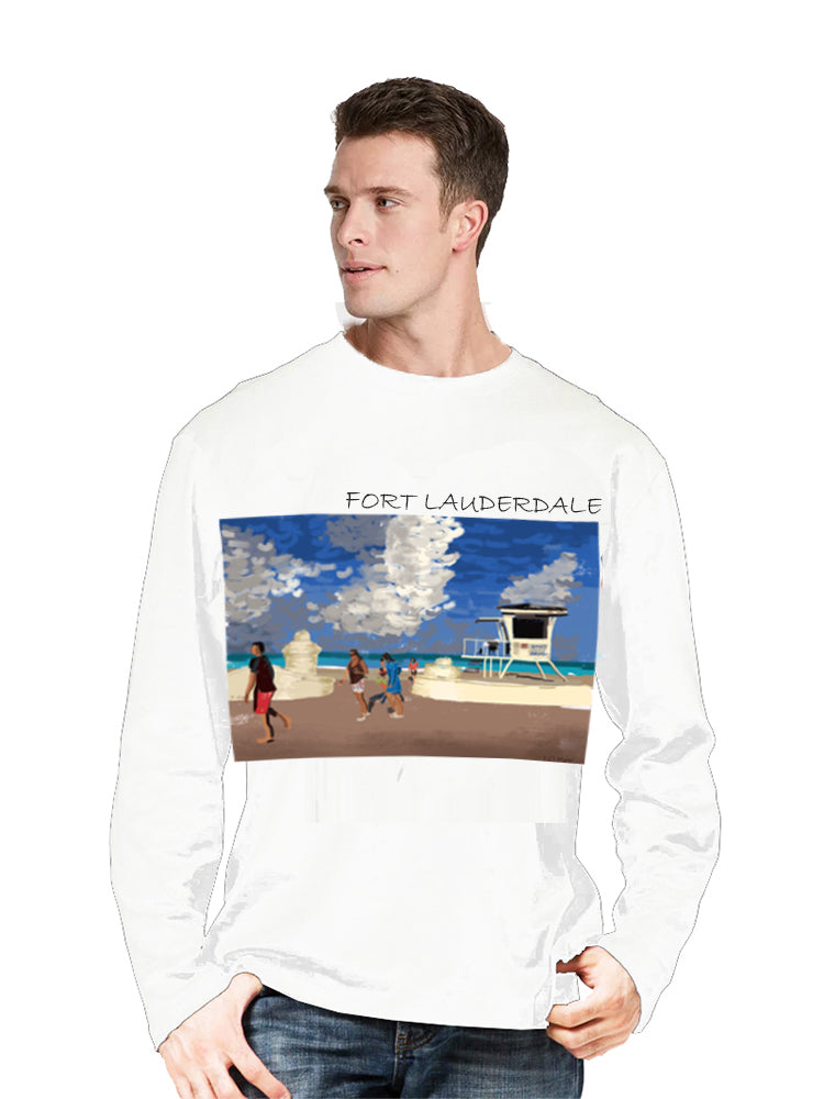 Fort Lauderdale-FL, USA Ashore Travel Shirts- Series No. 2330010 Artist Handpaint Long Sleeve Shirt EU Size 100% Cotton High Quality Gifts Tops