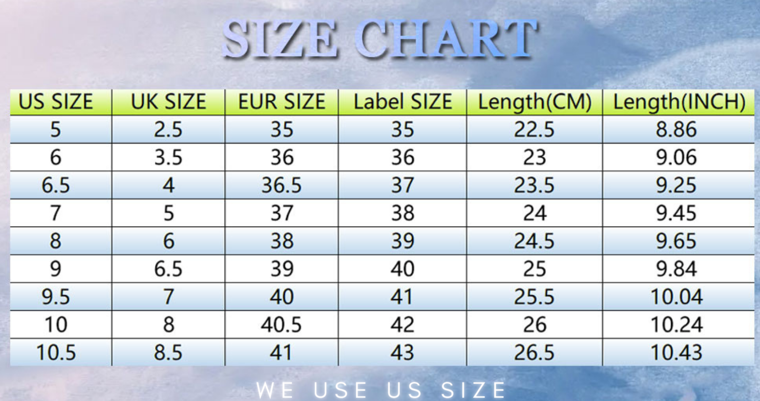 ASHORE Western SHOP Cowgirl Boot Size Chart