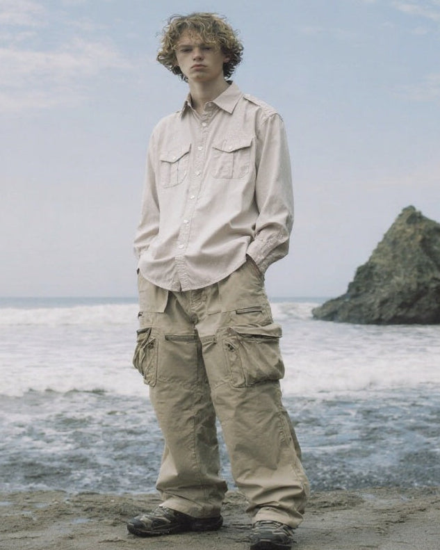 Overall, the shirt blends functional workwear details with a soft, broken-in look, making it ideal for everyday casual wear.