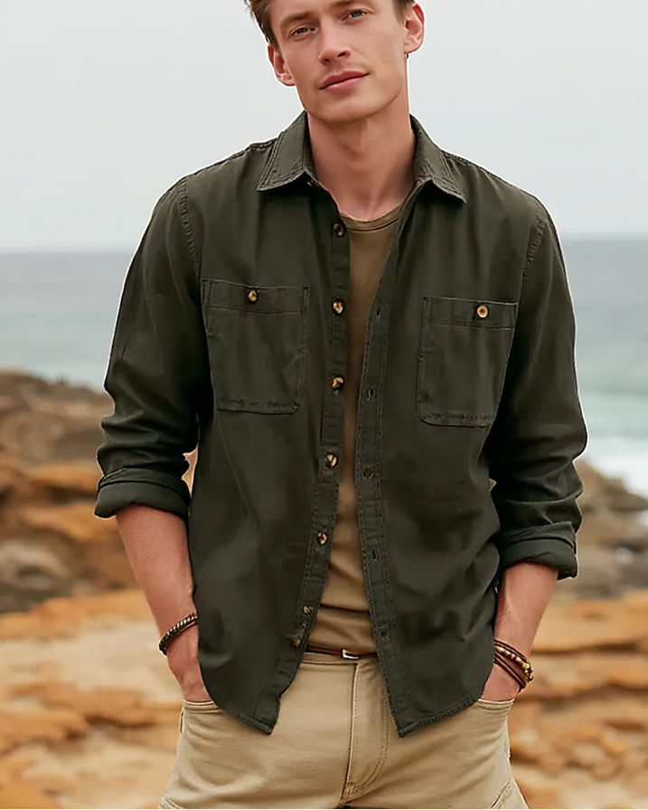 Ashore men’s cotton button-up shirt with a clean, casual style.