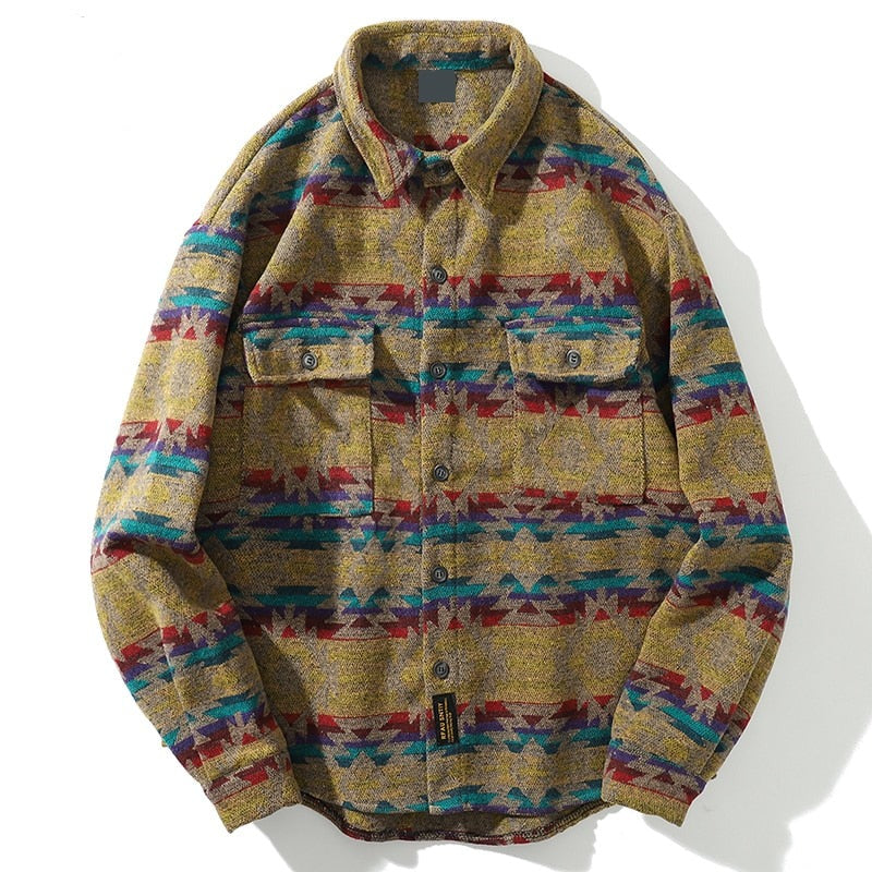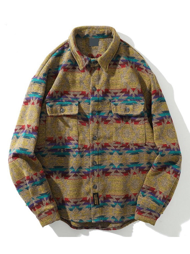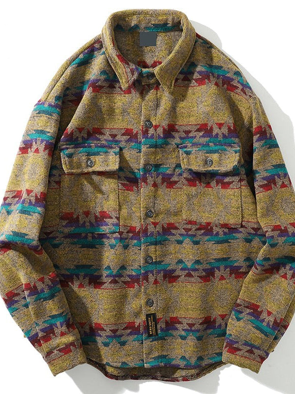 Men Autumn Winter Warm Woolen Shirt Jacket Unisex Long Sleeve Aztec Western Flannel Shirt