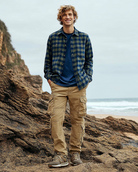 Ashore Shop men’s cotton flannel shirt features a classic check pattern in deep olive green and navy tones, giving it a rugged yet timeless look. Made from soft, brushed cotton flannel, it offers warmth and comfort while remaining breathable for everyday wear. The shirt is designed with a traditional collar, a full button-front closure, and dual chest pockets with button flaps that add both function and style. Long sleeves with buttoned cuffs provide a clean, structured finish, making this shirt easy to layer over a tee or wear on its own. Perfect for casual outings or cooler days, it pairs effortlessly with jeans or chinos for a relaxed, outdoors-inspired style.