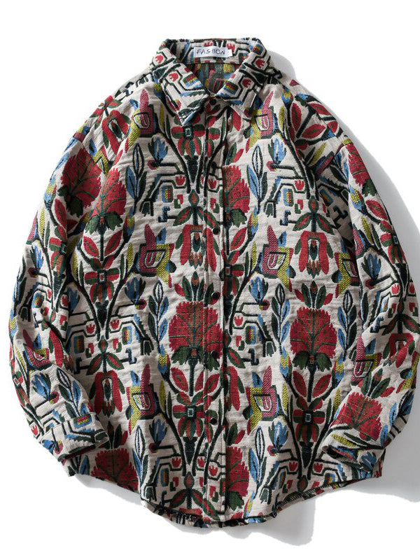 Mens Womens Western Casual Flowers Jacquard Long Sleeve Shirt Coats