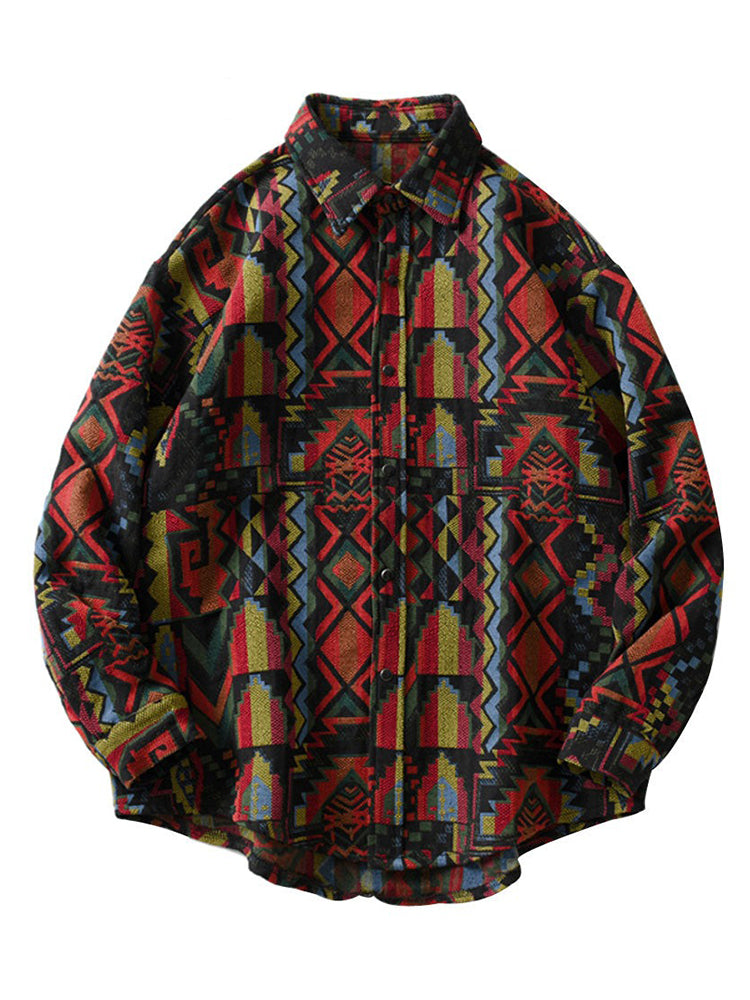Western Aztec Tribal Indian Button Shirts Mens Women Geometry Pattern Shirt Jackets