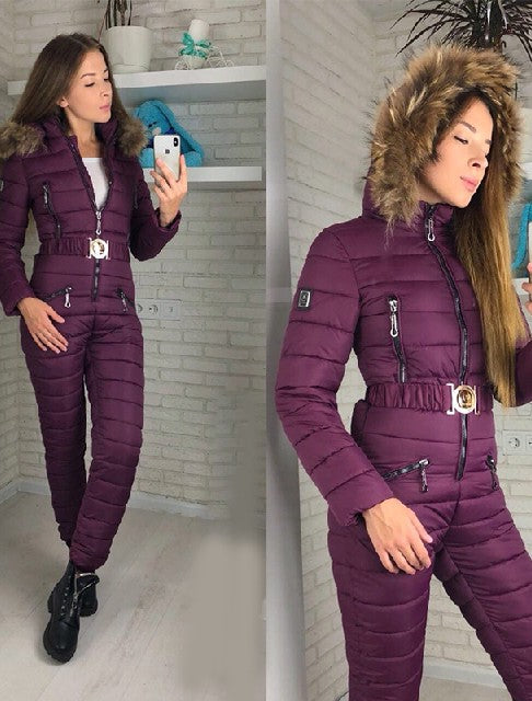 Ashore Ski Shop:  Women's Ski Jump Suit Windproof and Hooded with Fur                          Free Shipping: 7-15 Business Days