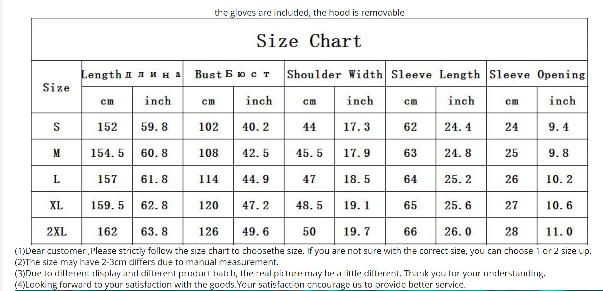 Garment Size Chart: Please carefully to choose your size