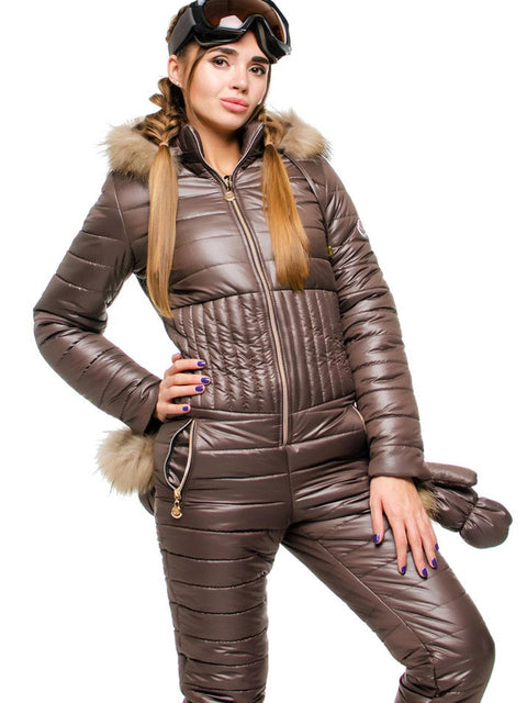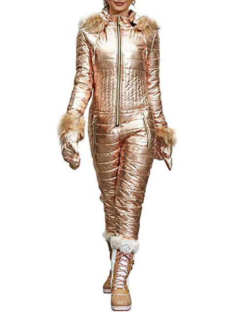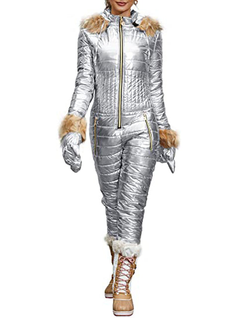Ashore Shop Women's Ski Jump Suit Windproof and Hooded with Fur