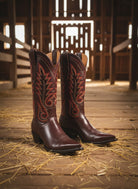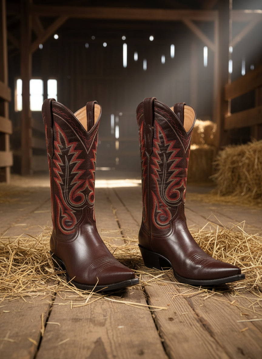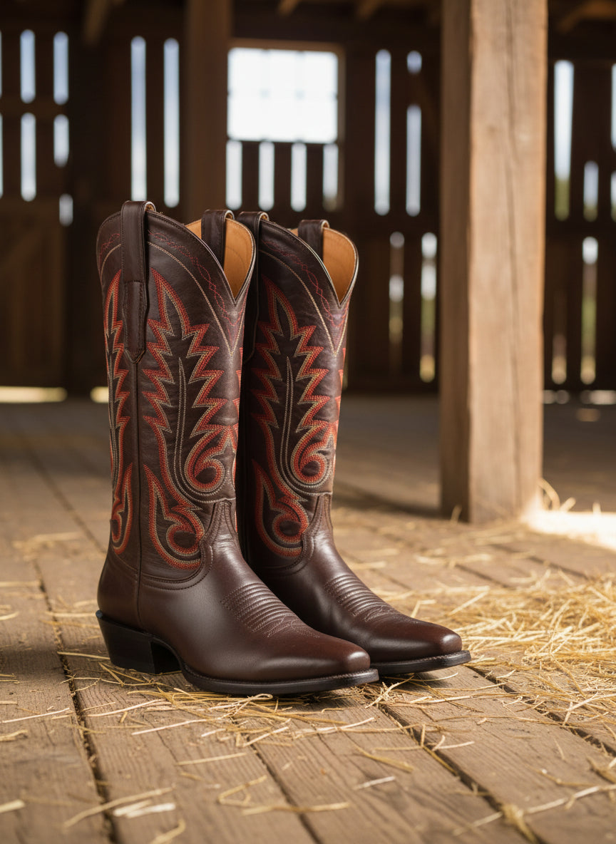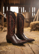 Western Cowgirl Boots Brown Leather With Vintage Embroidery Mid calf Boots