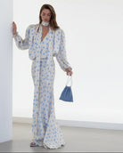 • Voluminous sleeves: The sleeves are long and puffed, adding structure and a slightly romantic, retro feel. The cuffs are gathered, creating a soft balloon shape.