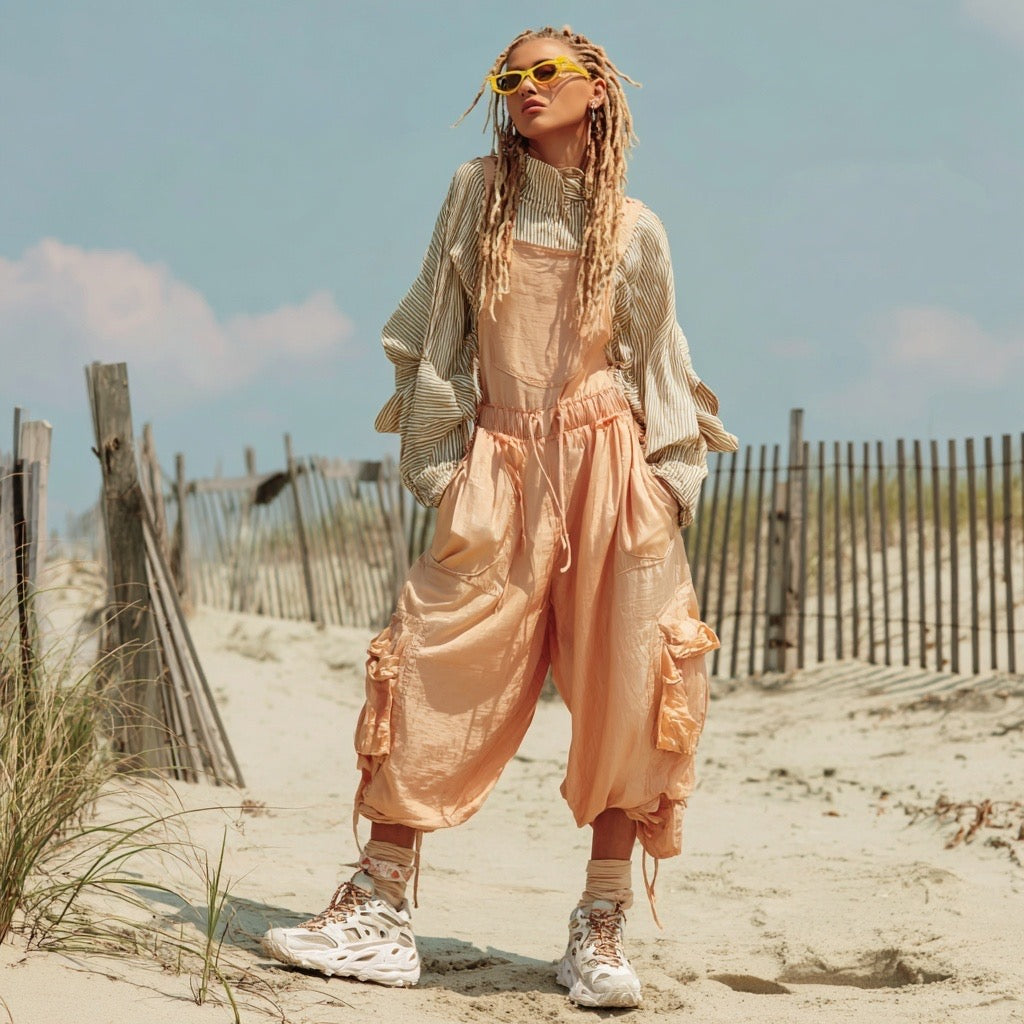 A Beach Washed Silk Jumpsuit , loose-fitting slip-on jumpsuit