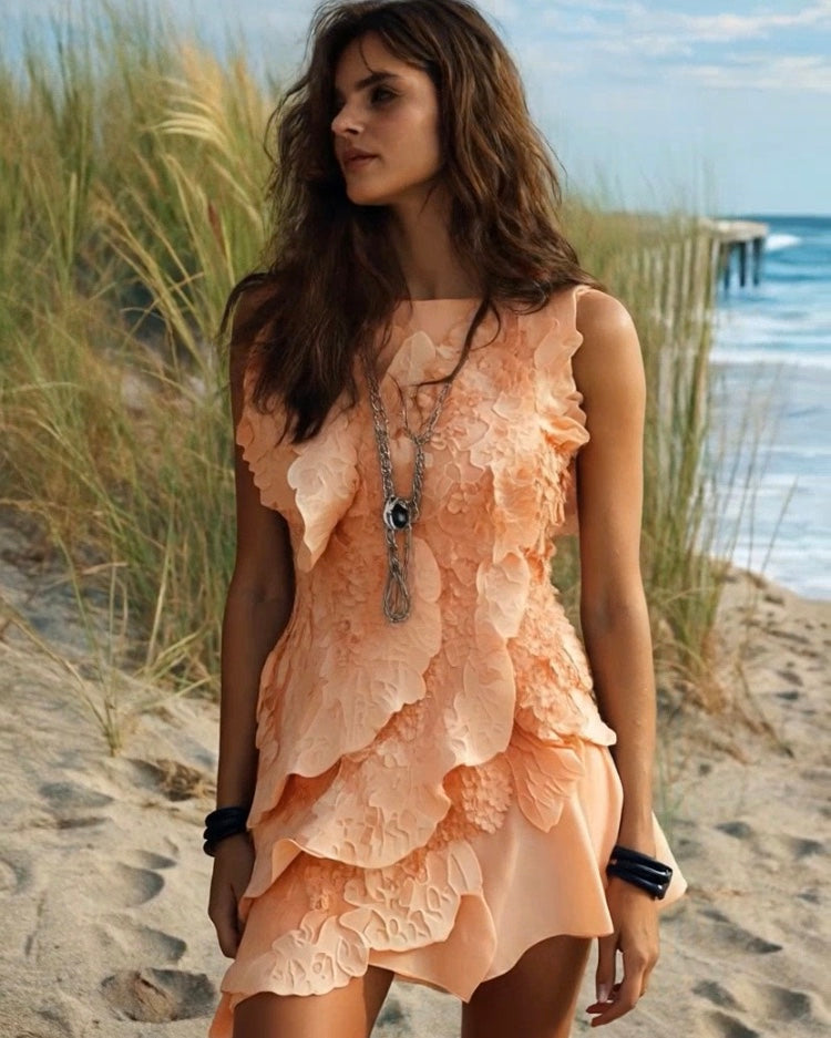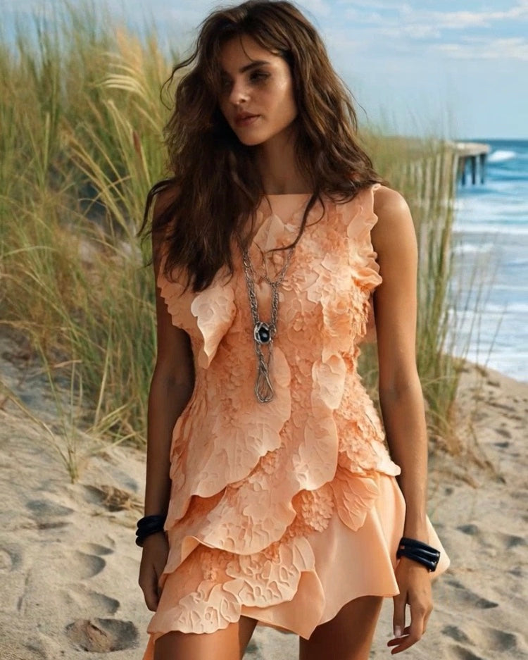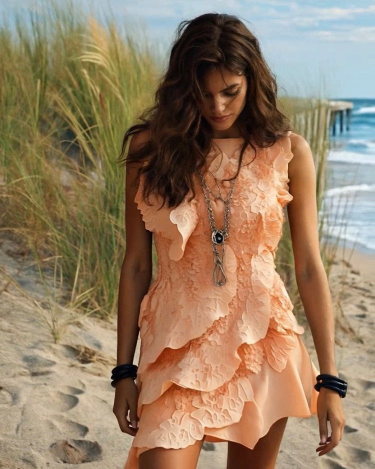 Designer Original Ruffle Creased Mini Dress Boho Style