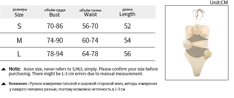 Swimwear 3D Floral Women Sleeveless Bodysuit Hollow Halter Beach Party Playsuit