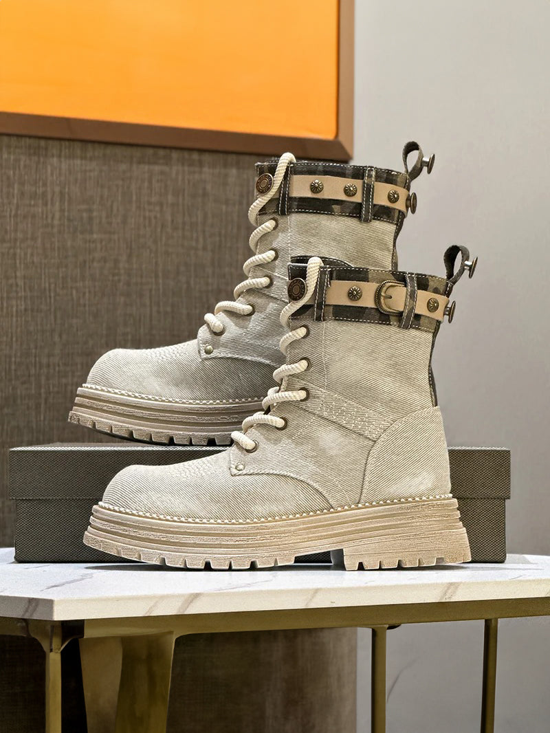 Cargo Boot Design: The functional cargo boot aesthetic includes durable lacing and adjustable straps, adding both style and practicality. Perfect for those who need both form and function.