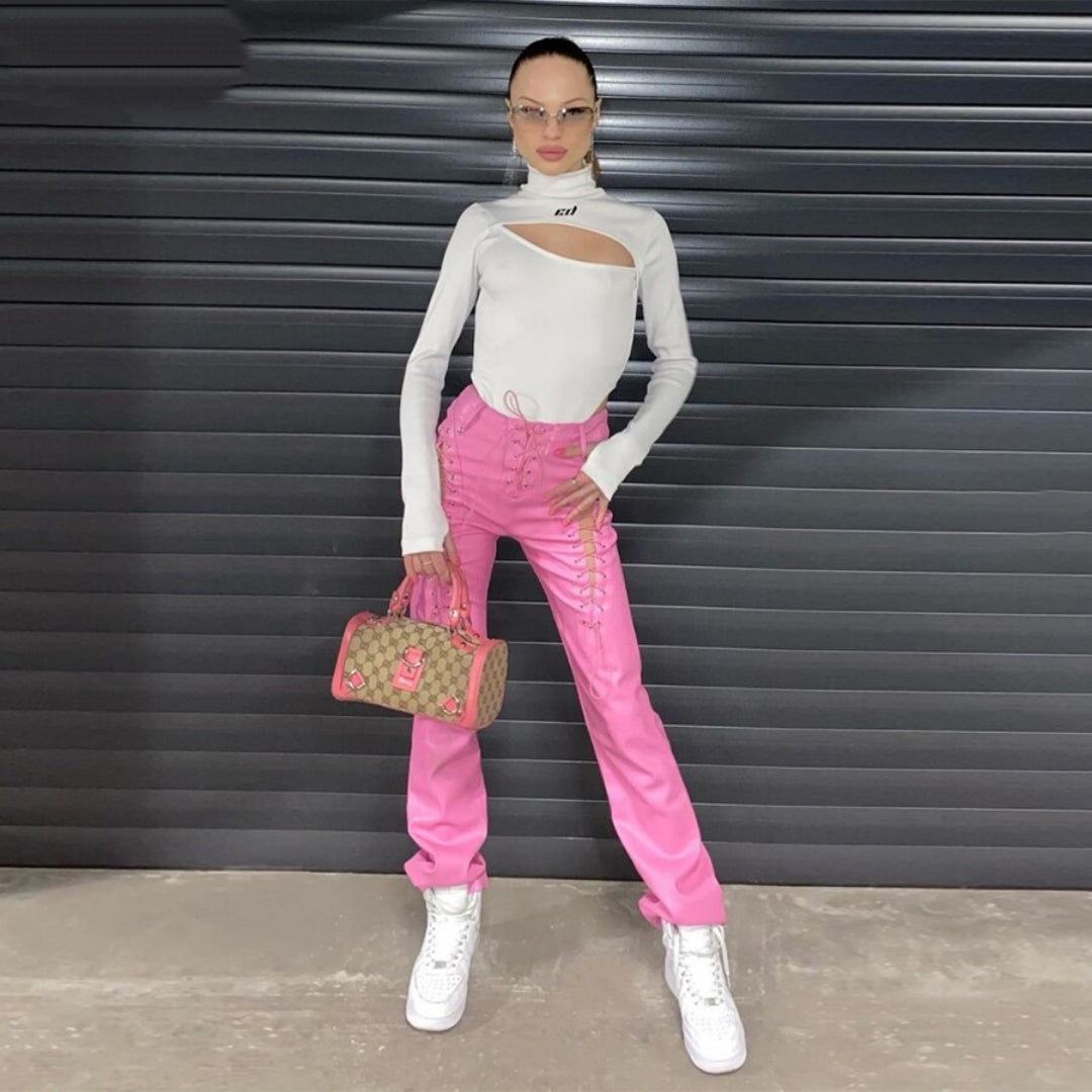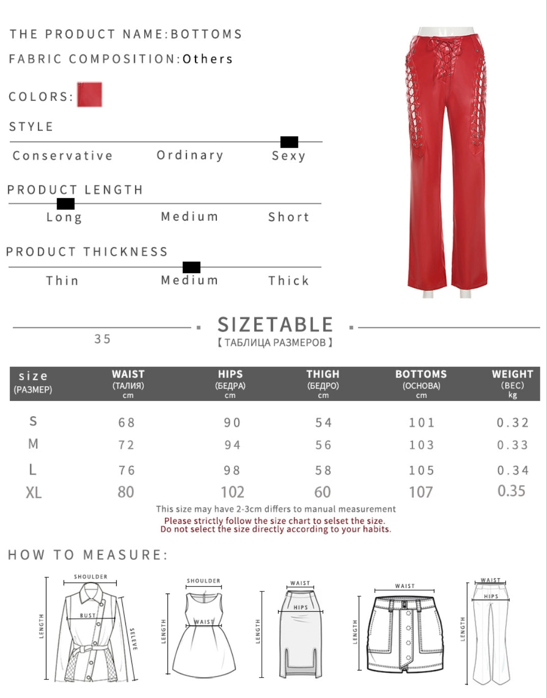 Ashore Shop Pu Leather pants Hollow Out Straight Trousers