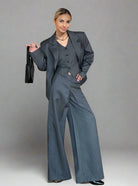 • High-waisted and wide-leg silhouette for a modern and dramatic look.