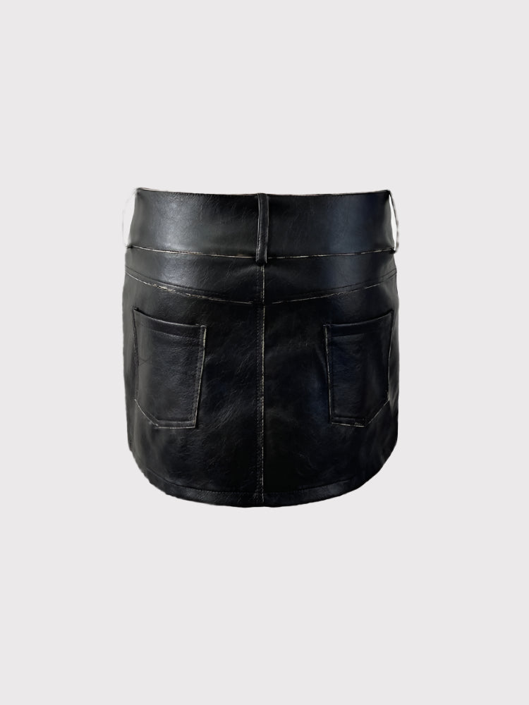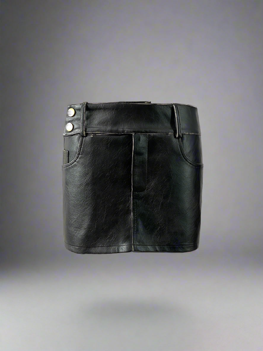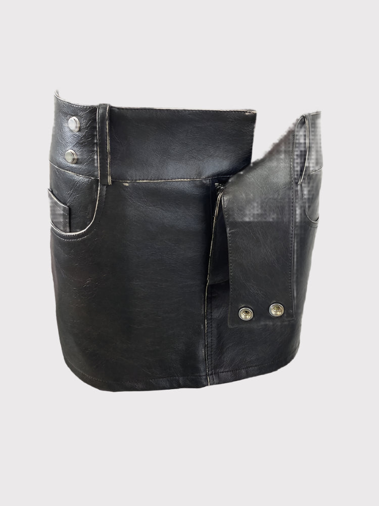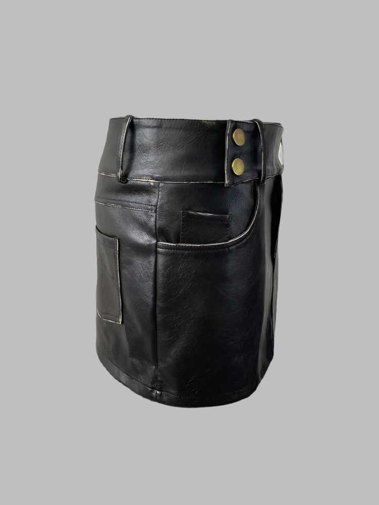 Ashore Shop Women Wider Shoulder Loose Blazer with PU Leather Skirt Sets