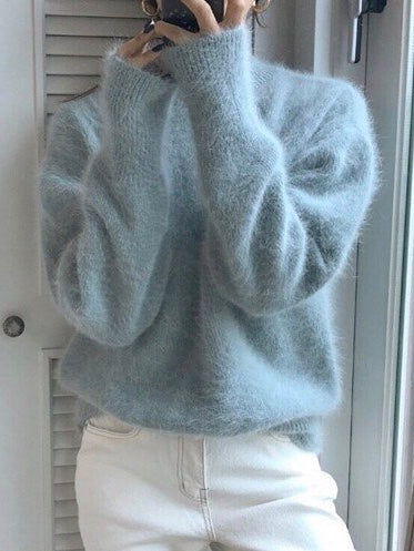 Mohair Women Knitted Sweater Jumpers Autumn Winter Mink Cashmere Soft Warm Long Sleeve All-Match Pullovers Mujer