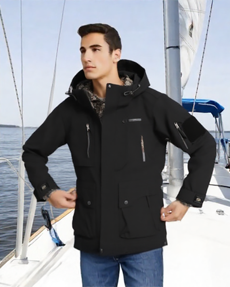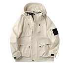 Ashore Shop men's midweight waterproof jacket is a practical and stylish piece, designed for mild to moderate weather. Featuring a lightweight yet durable construction, it offers protection from rain while maintaining comfort. The jacket includes a hood for extra coverage, adjustable to fit snugly, and several functional pockets, including a zipper pocket on the upper sleeve and buttoned pockets on the front for easy storage. The neutral beige color gives it a sleek, versatile look, ideal for both casual outings and outdoor activities. A subtle logo patch on the sleeve adds a modern touch without overwhelming the design. This jacket is the perfect balance of functionality and style.