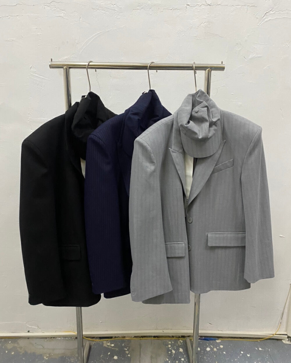 2025_Women_spring_new_fashionable_loose_hot_trend_wider_drop_pad_shoulder_skirt_sets-navy