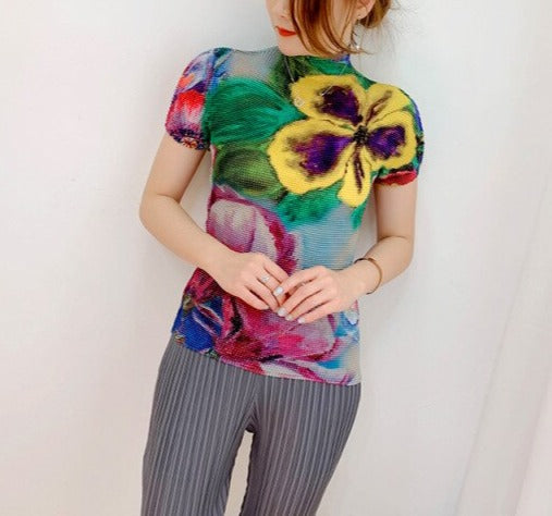 Limited Edition Designer Pleated sexy Pleated Print Top Women