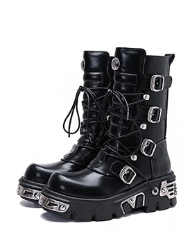 Women Punk Biker Boots Winter Black Leather Bellow Knee Boots