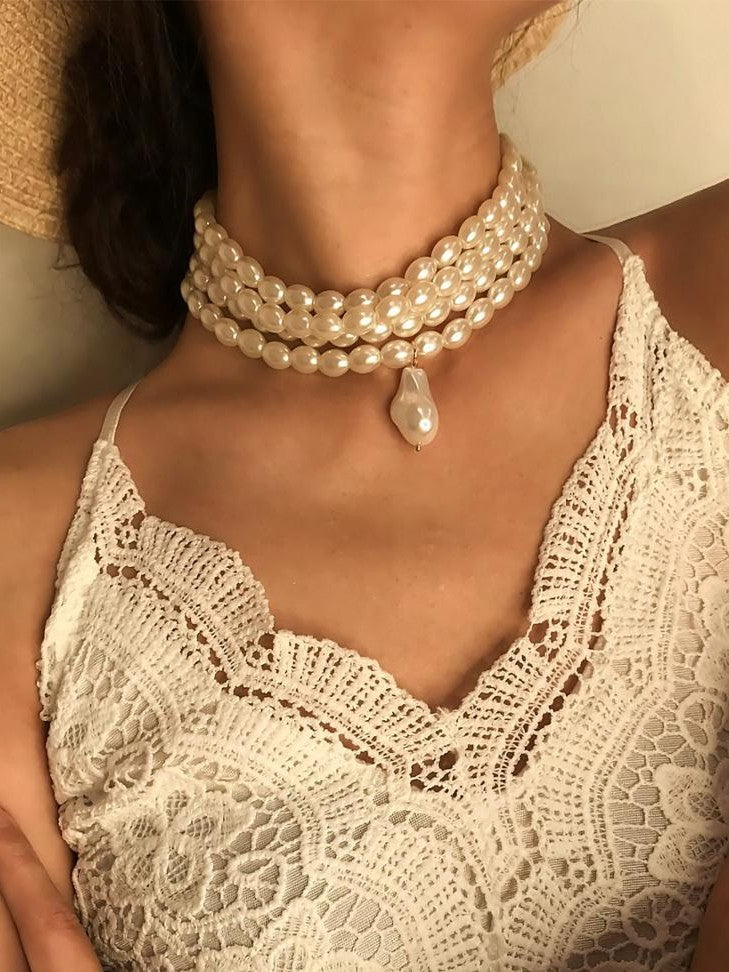 Ashore Shop Beautiful Multilayer Pearl Imitation Necklace Choker
