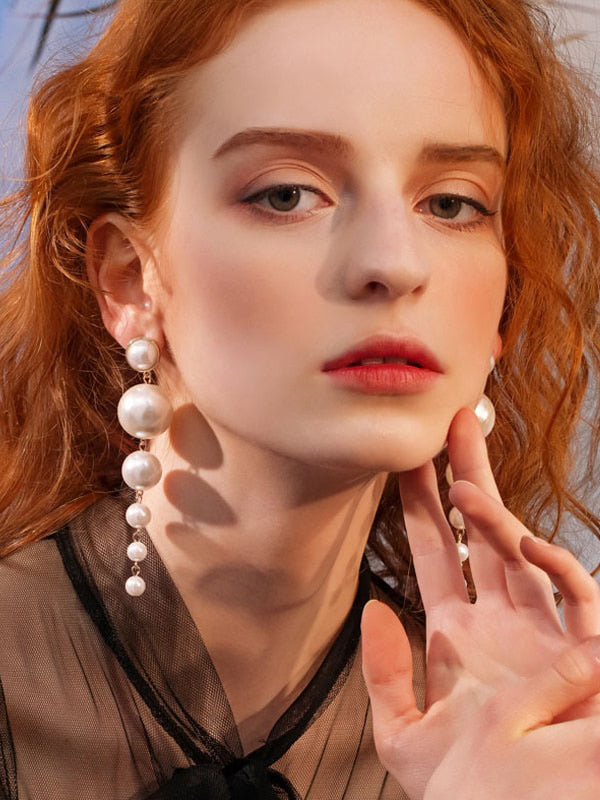 • Ashore Shop: String Statement Drop Earrings For Women Wedding Party Gift Trendy Elegant Created Big Simulated Pearl Long Earrings Pearls