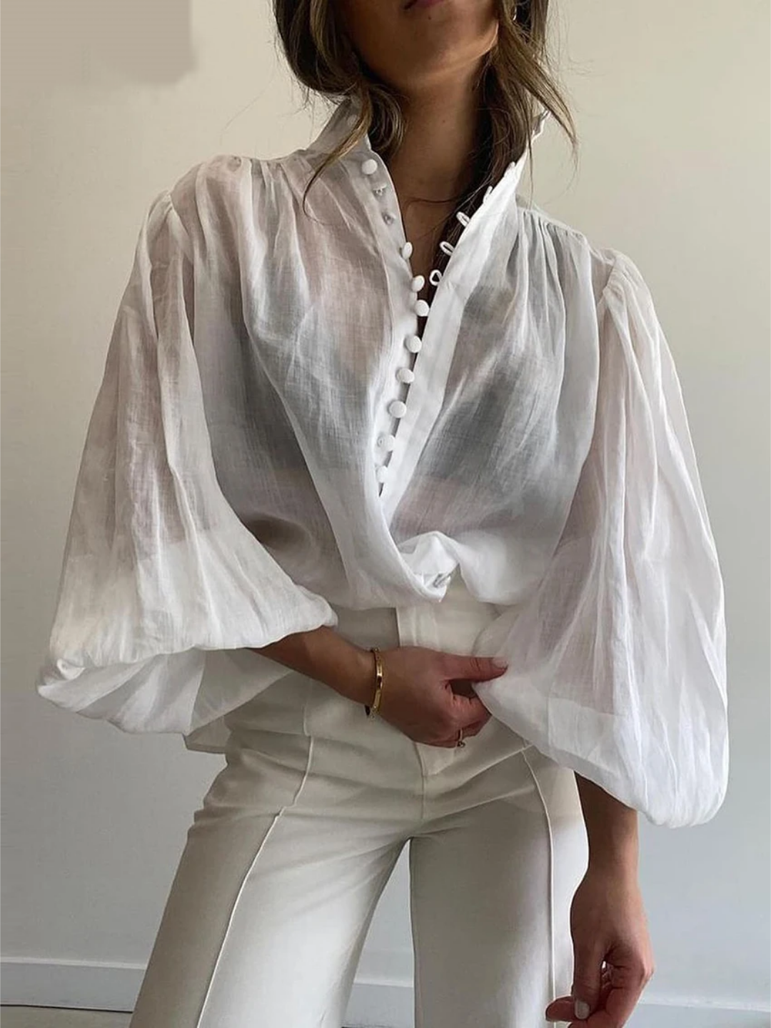 Type 1 : Elegant Stand Collar Puff Sleeve Shirts