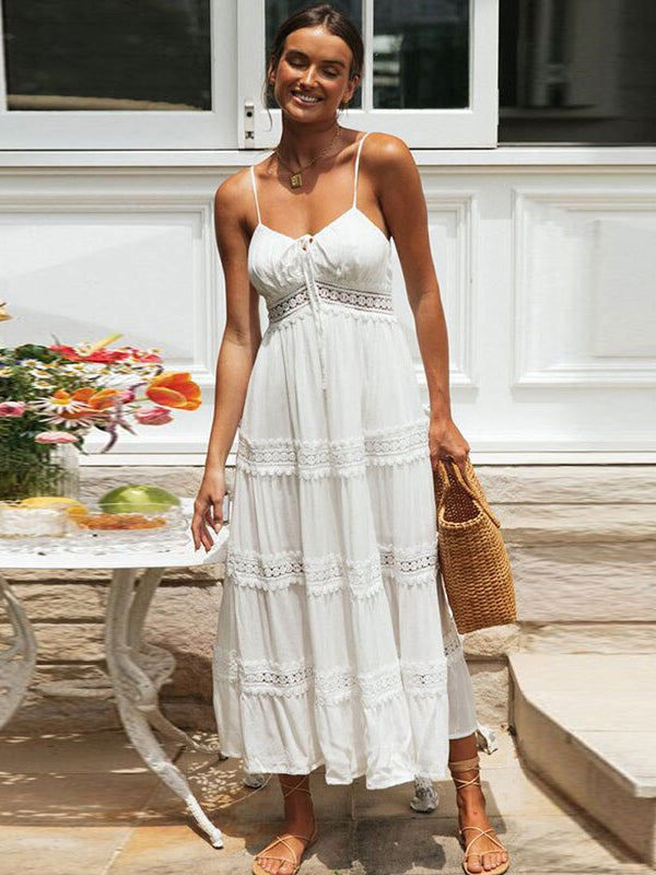 White Spaghetti Straps Dress Elegant 2023 Summer Long Beach Sundress