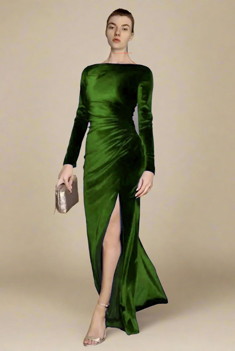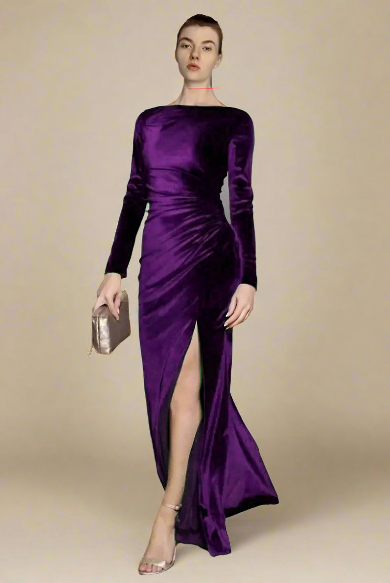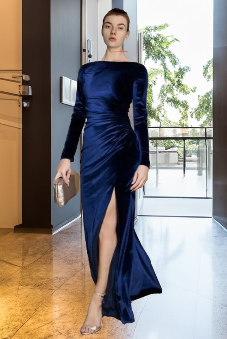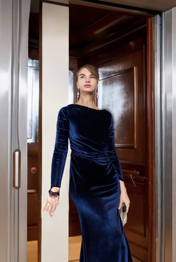Ashore Shop Velvet Boat Neck Long Sleeve Evening Dress