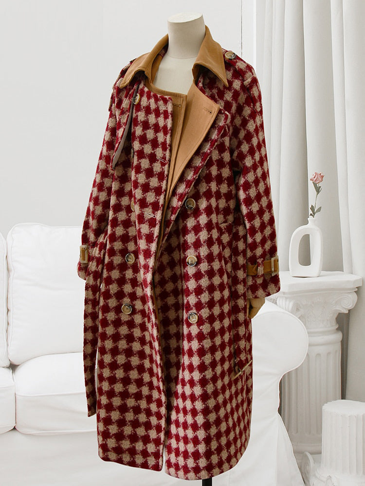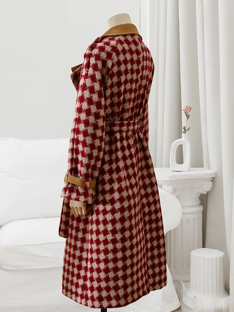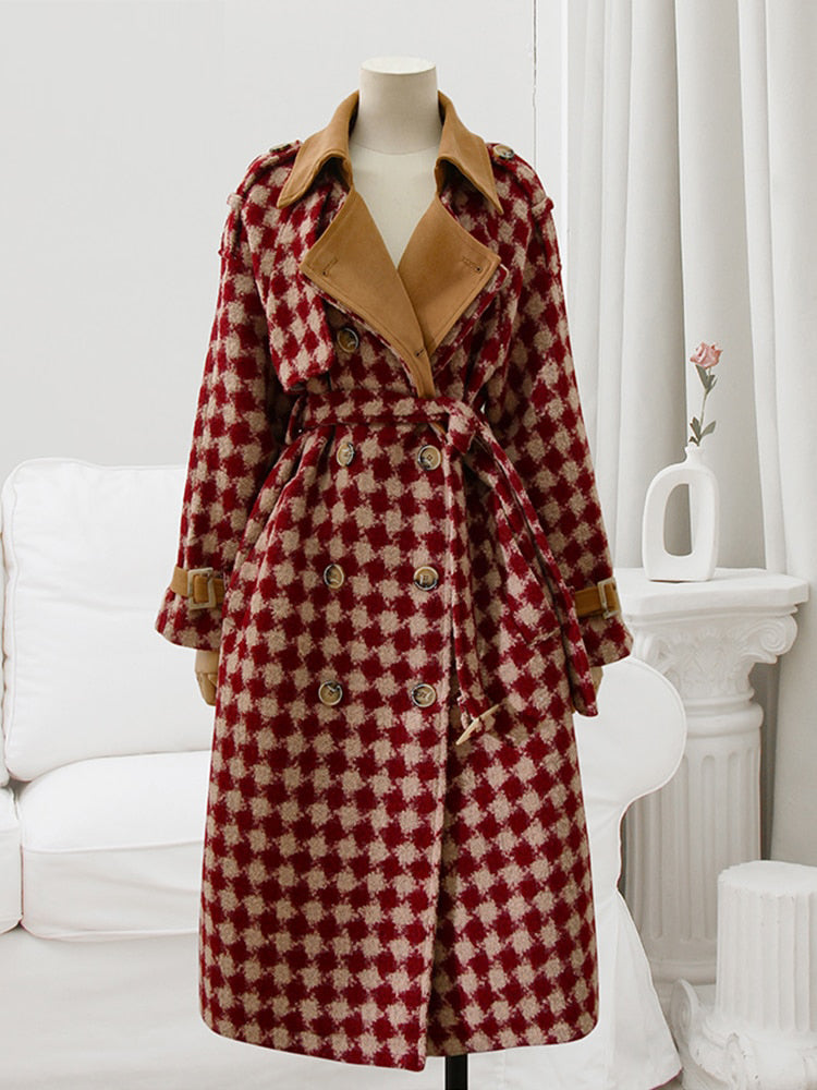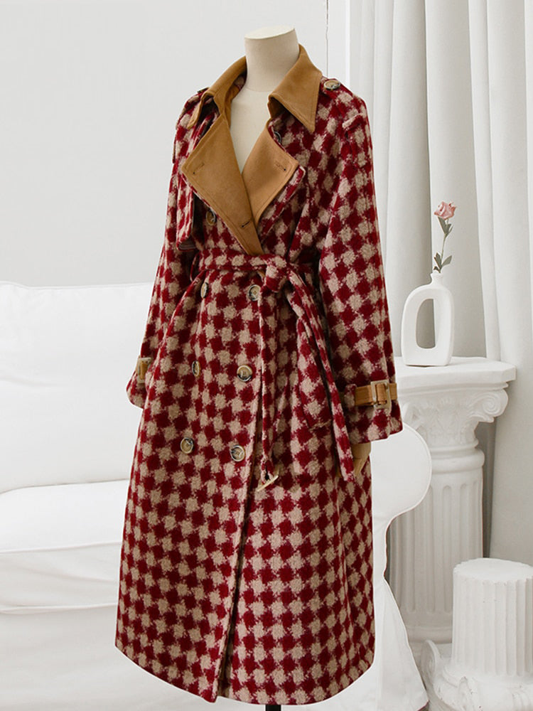 Womens Trench Coats Red Tweed Woolen Coat Women Sashes Double Breasted