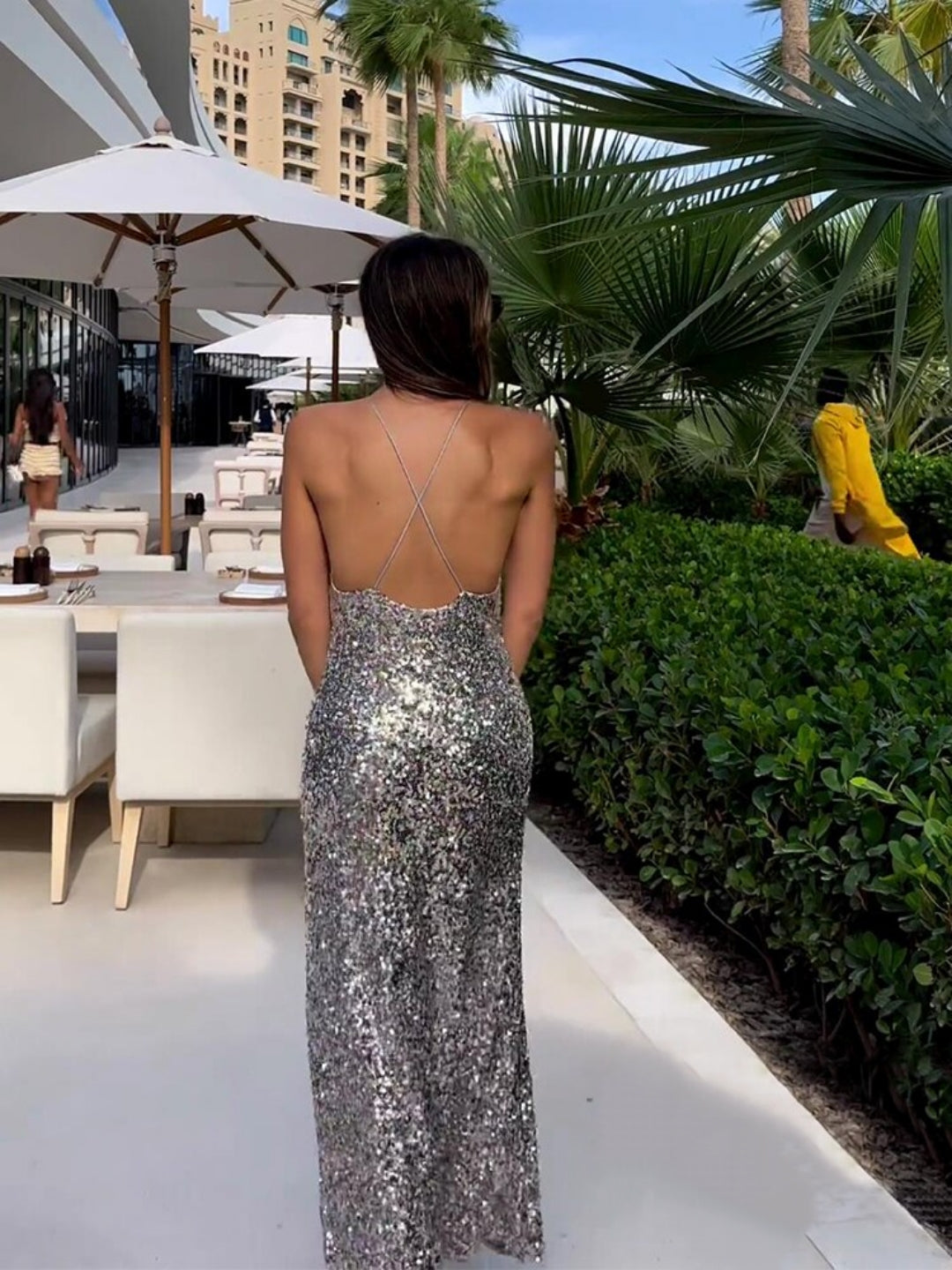 ASHORE SHOP Summer Sexy Multi Color sequins Sleeveless Backless Bodycon Female Midi Long Dresses Club