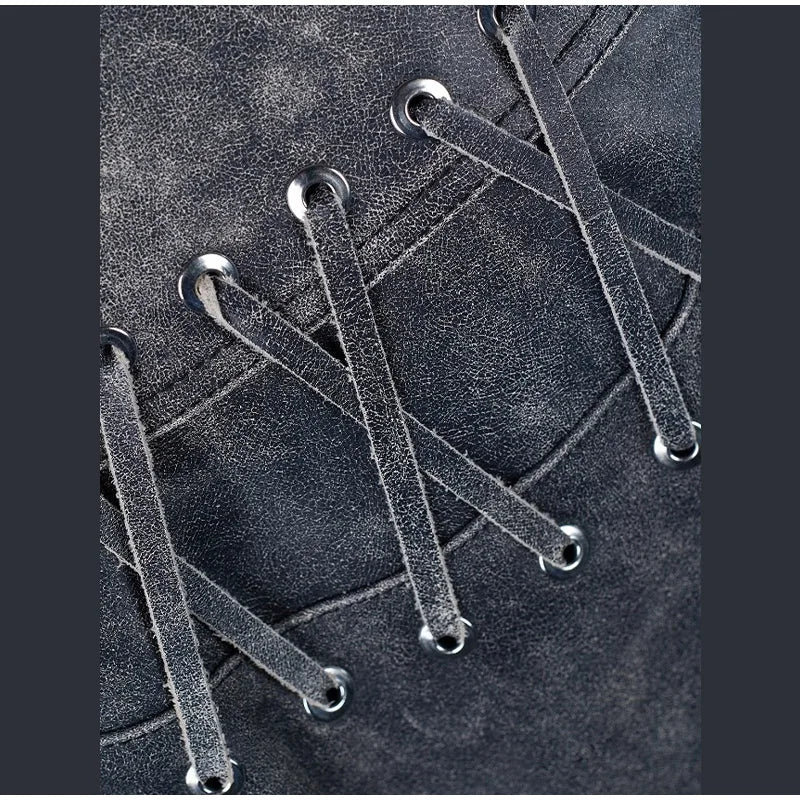 How to Wear: By Stylist Kevin To stay on trend, Wearing Leather Shorts Big Hole Mesh Legging and Motorcycling Boots from Ashore Punk Biker Shop
