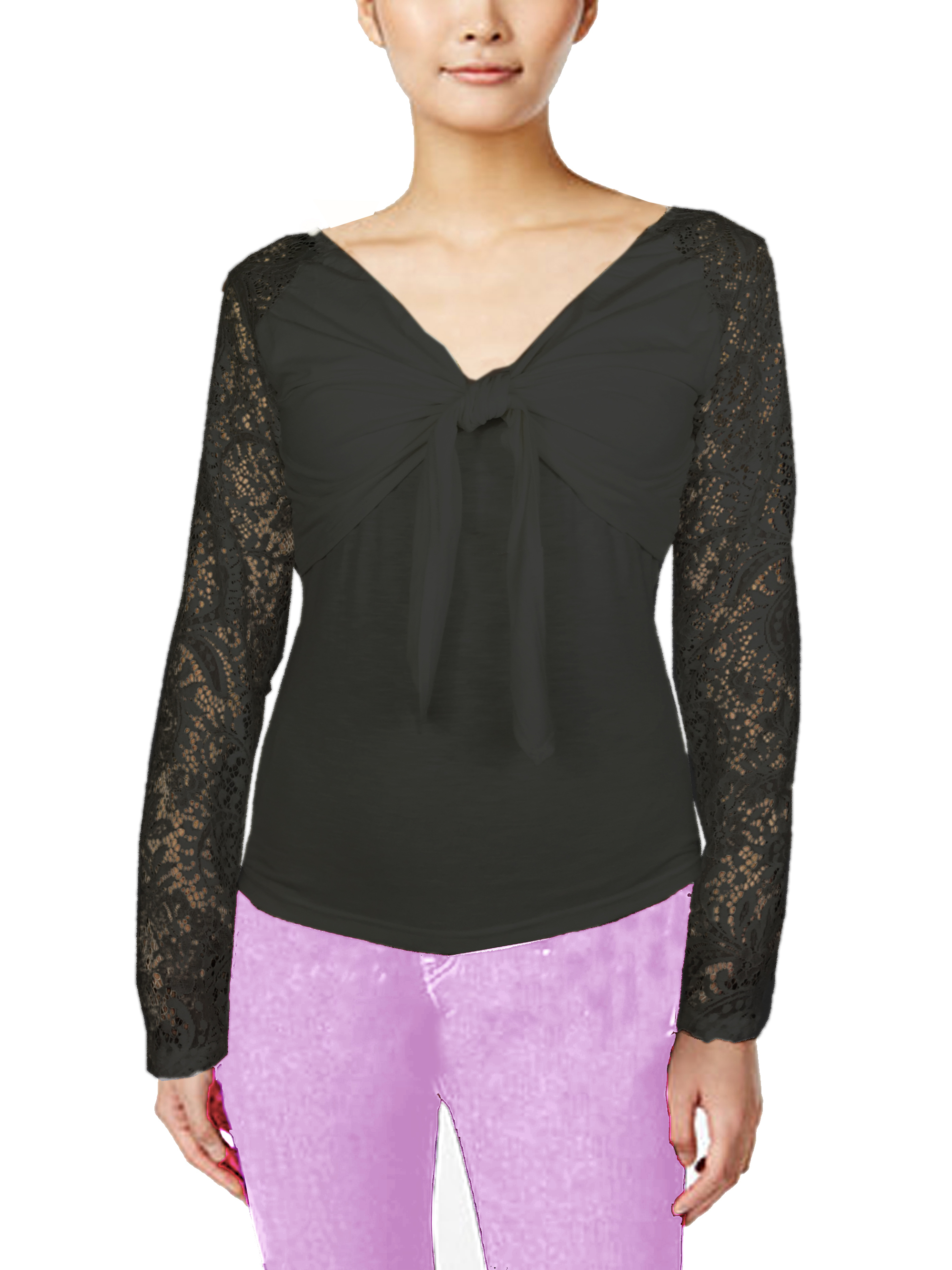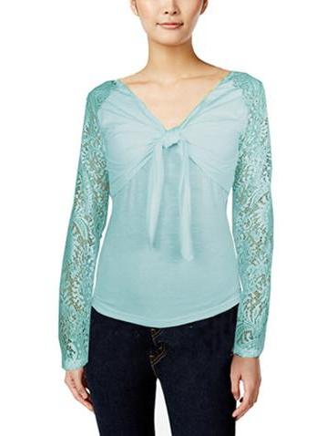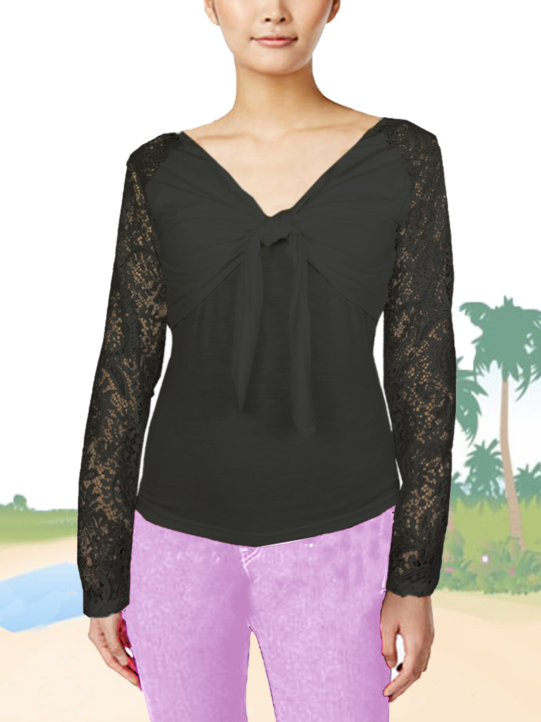 ASHORE WOMENS BOW-TIE STRETCH LACE BLOUSE