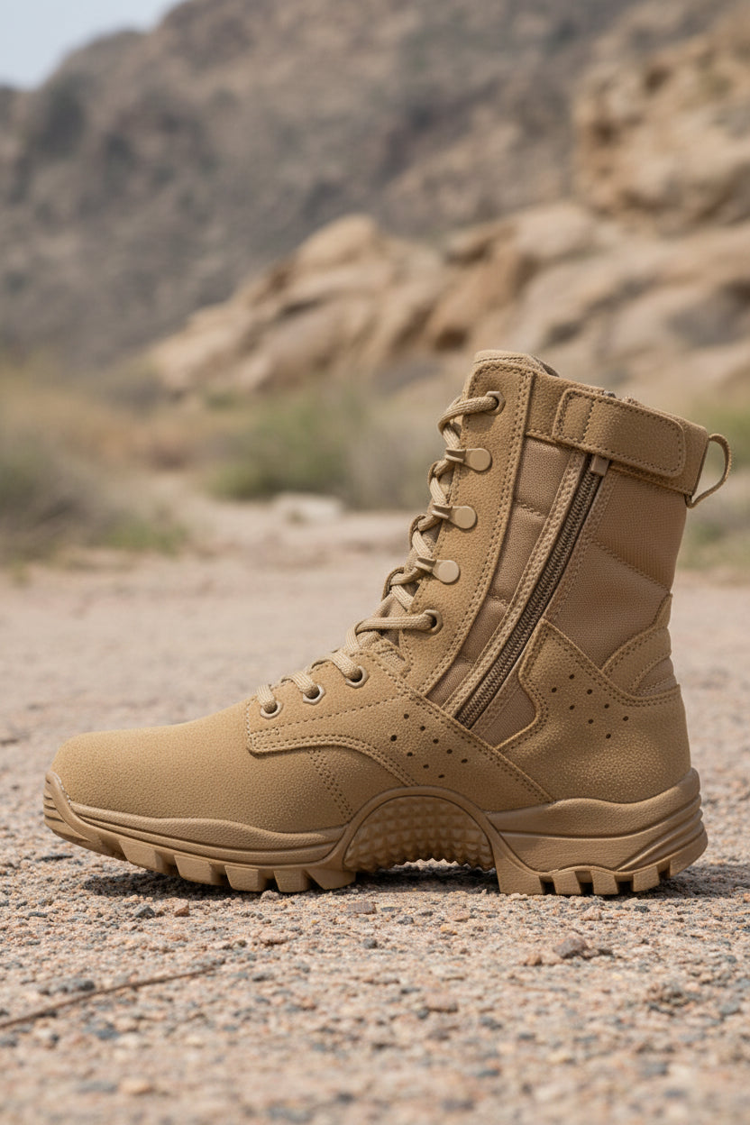 Ashore women’s durable hiking boots are built for cold, rugged terrain without added bulk. Designed in a neutral sand-beige tone, they feature a high-ankle silhouette for stability and support on uneven ground. The reinforced toe and heel offer extra protection against rocks and snow, while the thick, deeply lugged outsole provides excellent traction on icy or slippery surfaces. Breathable mesh panels combined with sturdy synthetic overlays ensure durability and comfort during long hikes. The lace-up closure allows for a secure, adjustable fit, making these boots ideal for winter trekking, outdoor work, or all-weather adventures.
