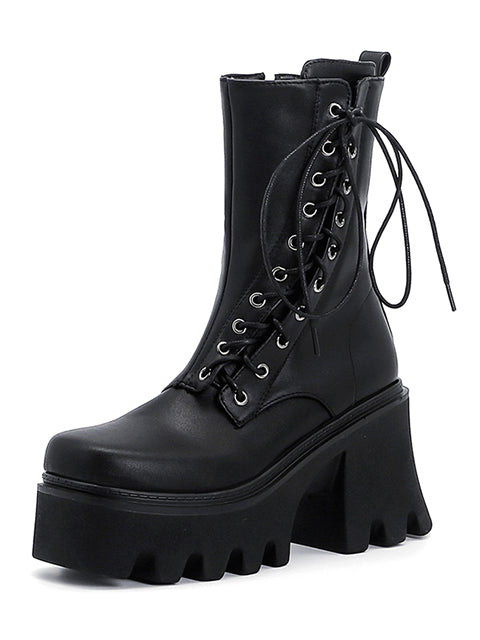 Biker Girl's Boots Women Boots With Zipper Sideway Lace Up Motorcycle High Platform Boots