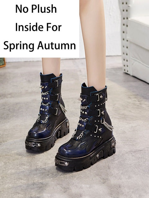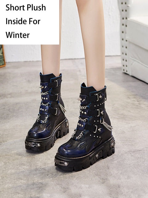 Ashore Punk Shop:  Winter Lady Plush Platform Ankle Chunky Boots 2022