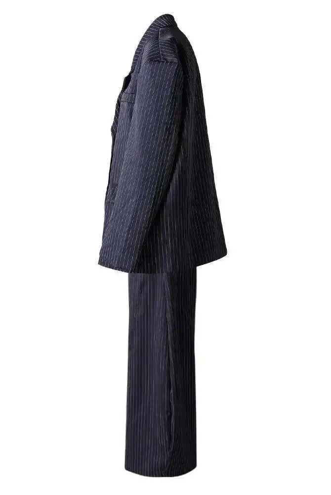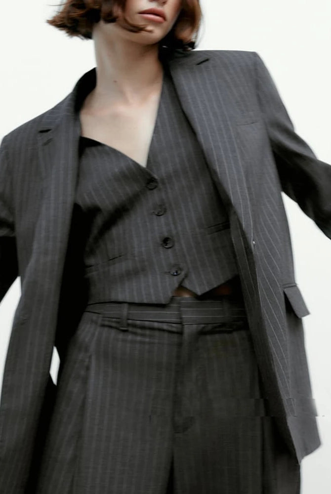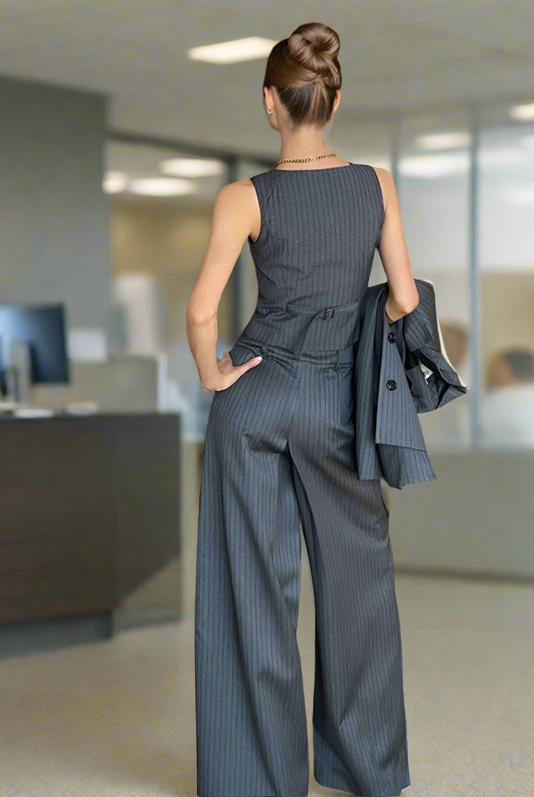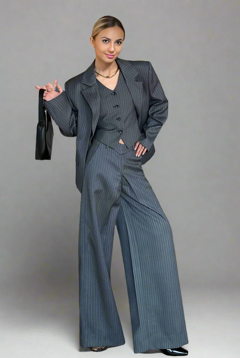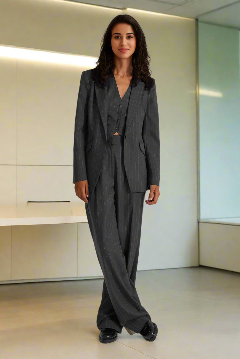 Modern Women's Pin Stripe Blazer 3 Pcs Long Sleeve Suit Jackets Vest And  Pants Suit Sets