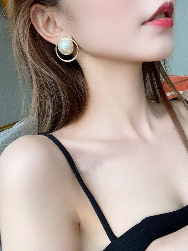 Ashore Shop Elegant Imitation Pearl Earrings Retro Style and Geometric