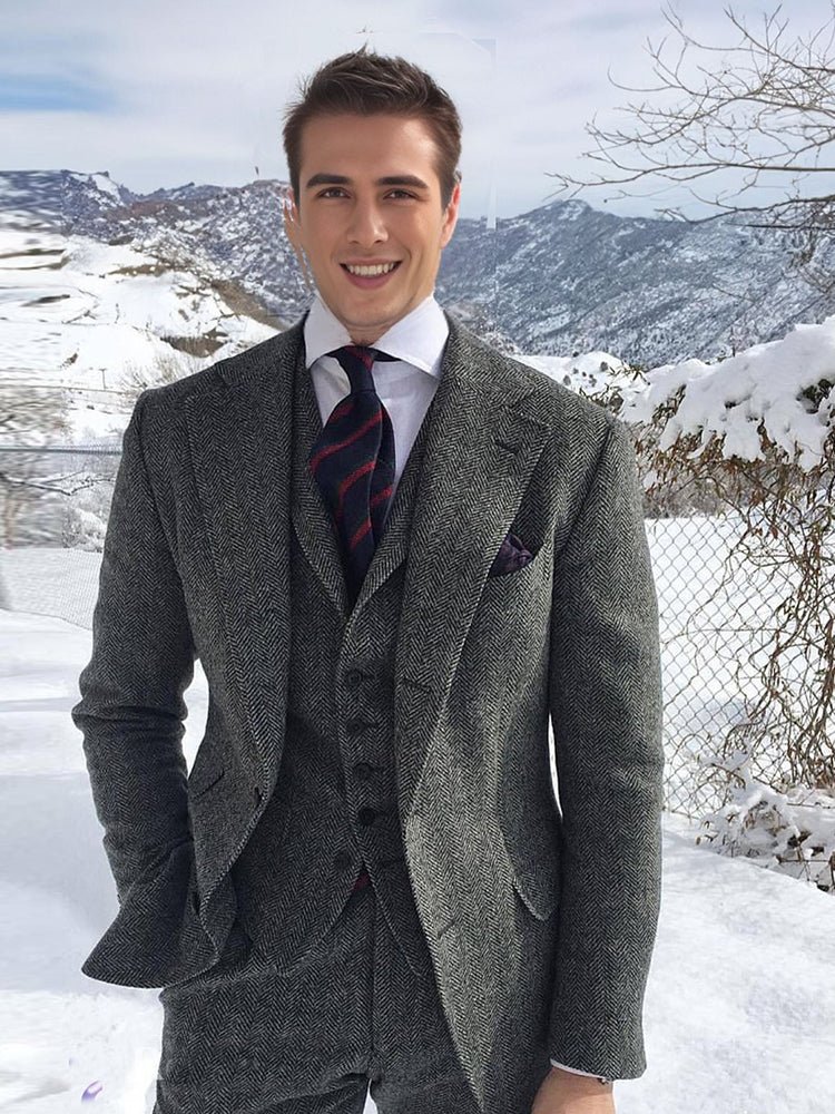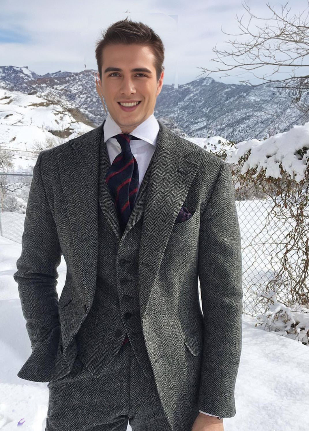 • ,ASHORE Boutique Gray Wool Tweed Winter Men Suit's For Wedding Formal Groom Tuxedo Herringbone Male Fashion 3 Piece (Jacket +Vest +Pants+Tie) Office Tie is the matching gift