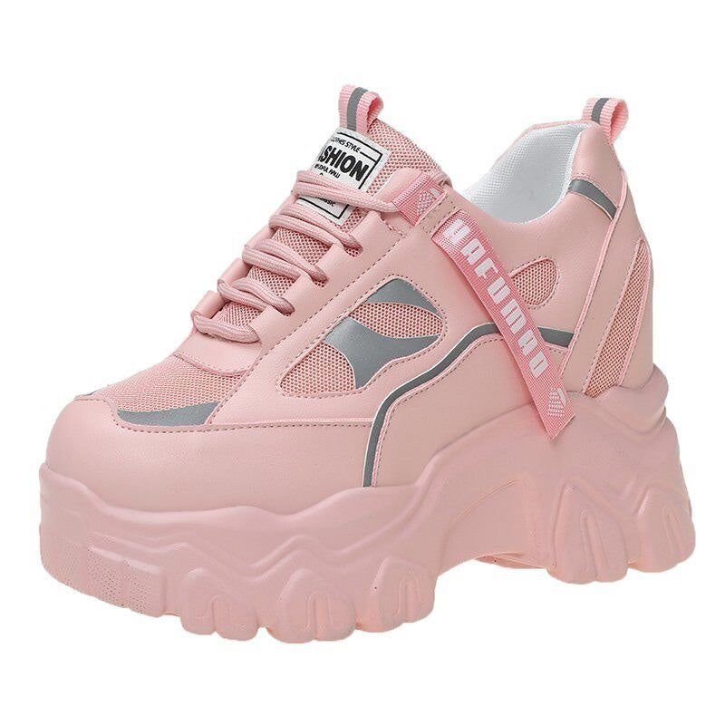 Ashore Shop Autumn Women Platform Chunky Sneakers 8cm High Heel Black Casual Vulcanize Shoes Designer Breathable Mesh Dad Shoes Sneakers New