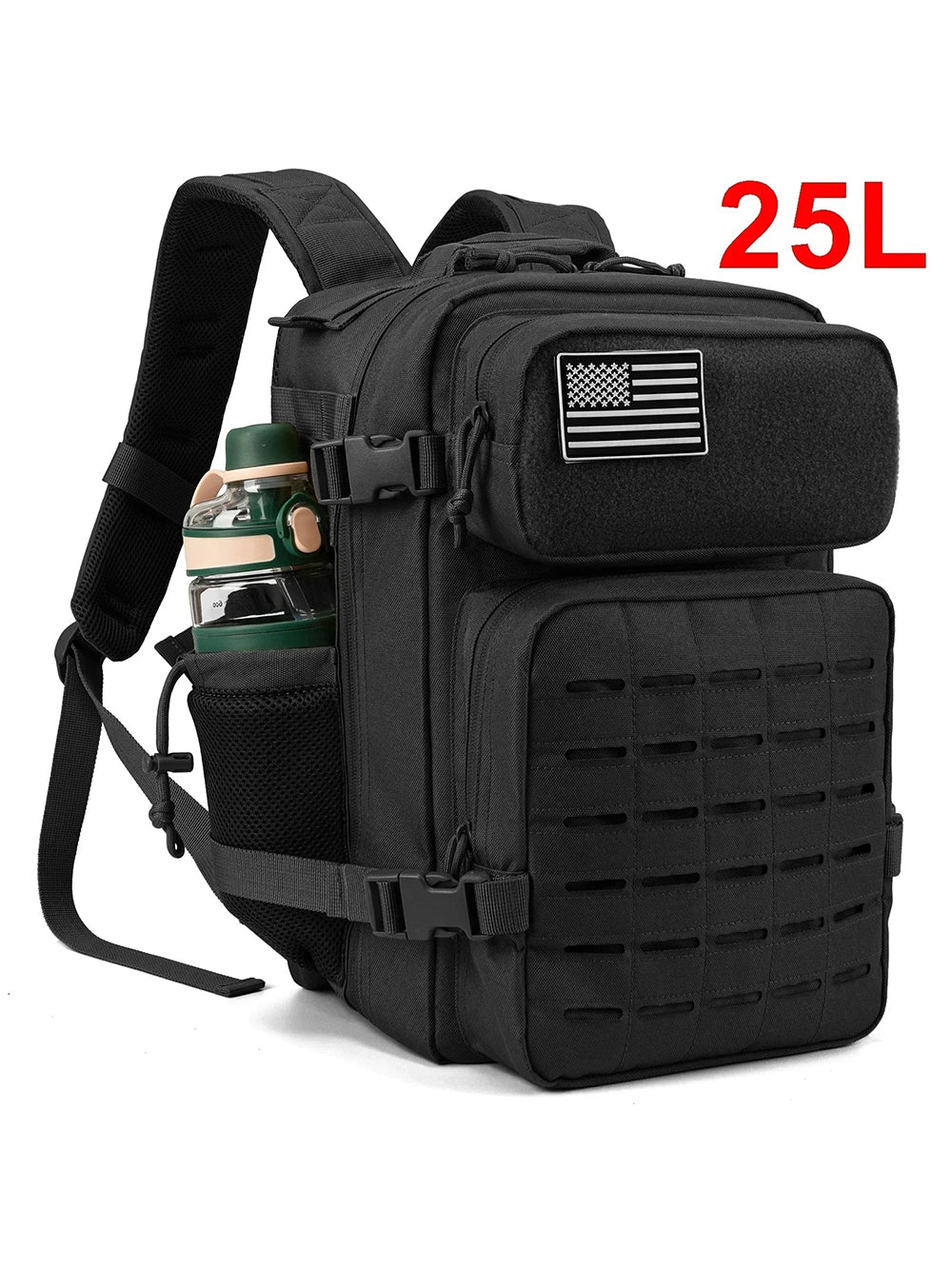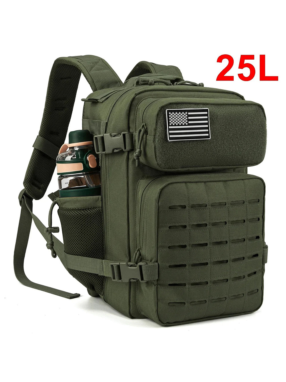 Ashore Shop 25/45L Tactical Backpack is a versatile and heavy-duty bag designed for both men and women. It features a robust laser-cut MOLLE system, allowing for easy attachment of additional gear or accessories, making it perfect for outdoor activities like trekking, hiking, and camping, as well as everyday use like school or gym.