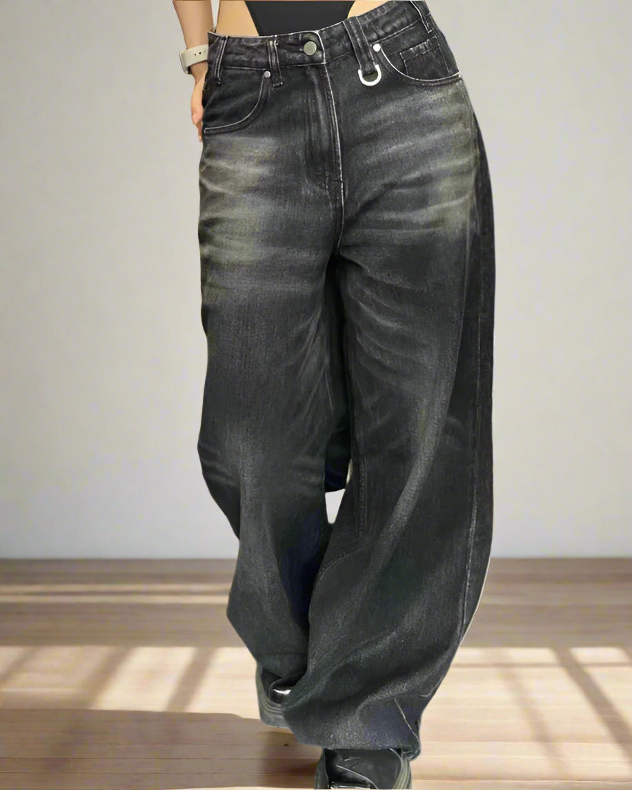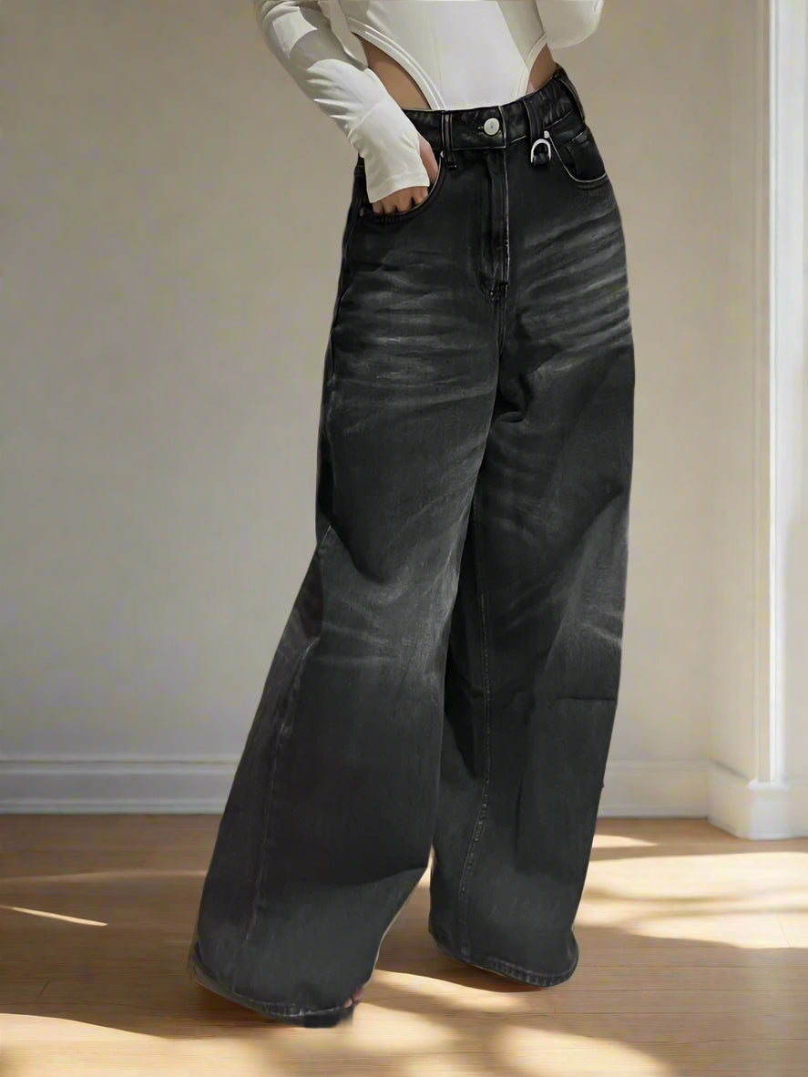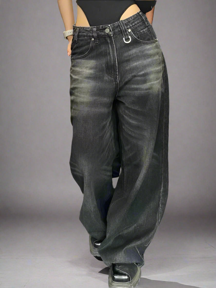 ASHORE SHOP Baggy Black Denim Pants Oversized Jeans