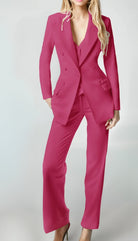Vests for Versatility: A coordinating vest adds a versatile layer to the set, allowing you to switch up your look effortlessly. The vest features a sleek design with a button-front closure and adjustable back for a customized fit, perfect for layering under the blazer or wearing alone for a more relaxed look.