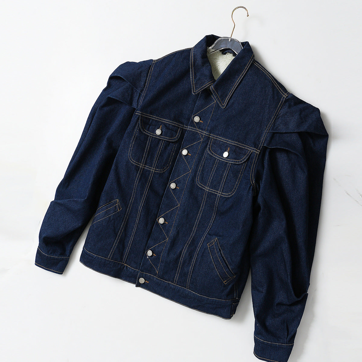 Trendy Extended Shoulder Davy Denim fleece softshell Jackets