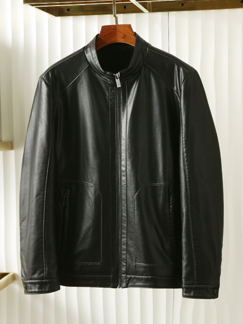Men's autumn and winter plus velvet business casual stand-up collar washed leather jackets