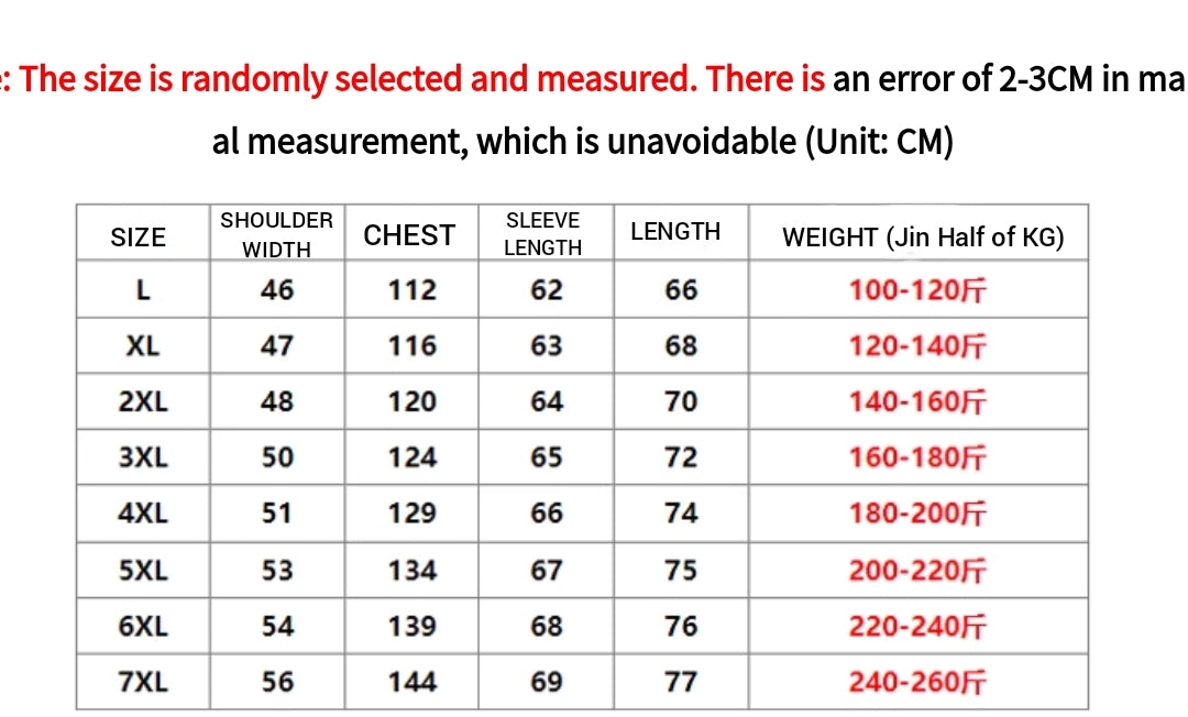 • Size: L (100-120 Jin) ) 7XL (240-260 pounds)