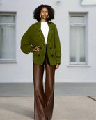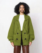 Ashore Shop Green Sweater Cardigan with Suit Lapel Collar blends casual comfort with refined tailoring, making it a versatile wardrobe staple. Crafted in a rich green hue, this cardigan features a structured lapel collar that adds a touch of sophistication, giving it the polished look of a blazer with the cozy feel of knitwear. Its relaxed yet elegant silhouette makes it easy to layer over both casual tops and dressy blouses, while the soft fabric ensures all-day comfort. Perfect for elevating everyday outfits or adding a smart-casual edge to your look, this cardigan is a stylish balance of modern chic and timeless design